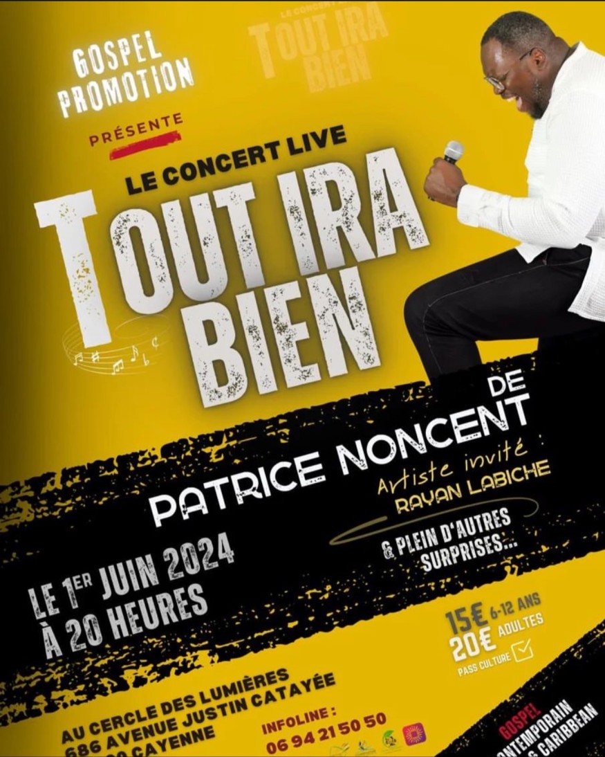"Tout ira bien", c'est le thème du concert live de Patrice Noncent qui se tiendra le 1er juin prochain à 20h00 au Cercle des Lumières.