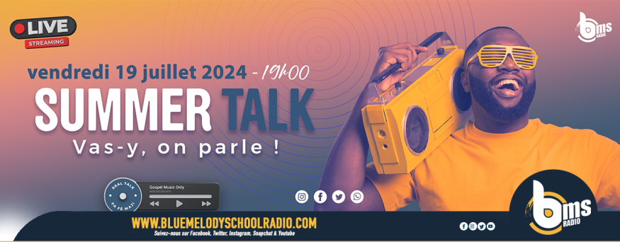 Ça a mis du temps mais ça y est, le Summer Talk de Blue Melody SchooL Radio est lancé. Une émission de divertissement animée par Kirky'Pèg, accompagné de l'équipe de la radio, où avec des invités, ils échangent autour de sujets divers qui alimentent généralement les conversations en marge des offices.